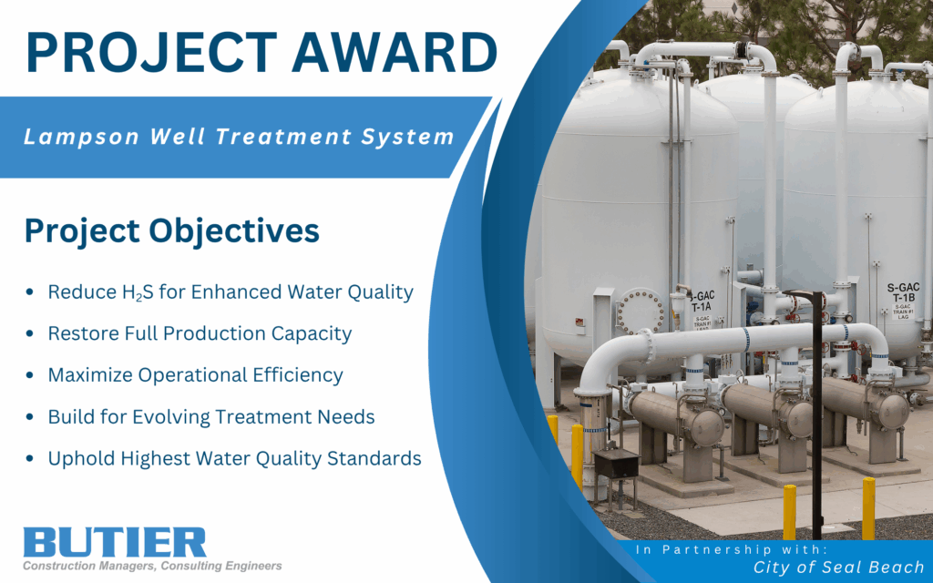 Butier Engineering, Inc. is proud to have been selected by the City of Seal Beach (City) to provide construction management and inspection services for the Lampson Well Treatment System Project, a critical infrastructure effort aimed at improving water quality and restoring the well’s full operational capacity.