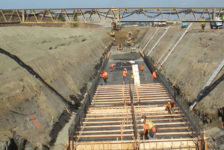 Approximately 15,000 CY of concrete were used to construct the reinforced concrete box storm drain, which includes lateral storm drains with catch basins. Major dewatering efforts and shoring under the Jamboree Bridge at Moffett Drive presented significant challenges that Butier coordinated with success.