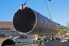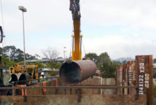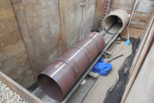 The project rehabilitated 23,000 linear feet of 66- to 69-inch diameter prestressed concrete cylinder pipe (PCCP) that was constructed in 1959. Instead of trenching and removing the old pipe, crews excavated 13 entry portals (25- by 60-feet) that were spaced 525 to 2,500 feet apart at strategic points; inserting new steel liners into the pipeline using a specially designed cart; welding the new steel liners into place; inserting grout into the annular space between the new liner and existing pipeline; and applying a cement mortar lining to the new steel liner. When the pipe installation was complete, the portals were backfilled, the streets repaved, and the pipeline was put back in service.